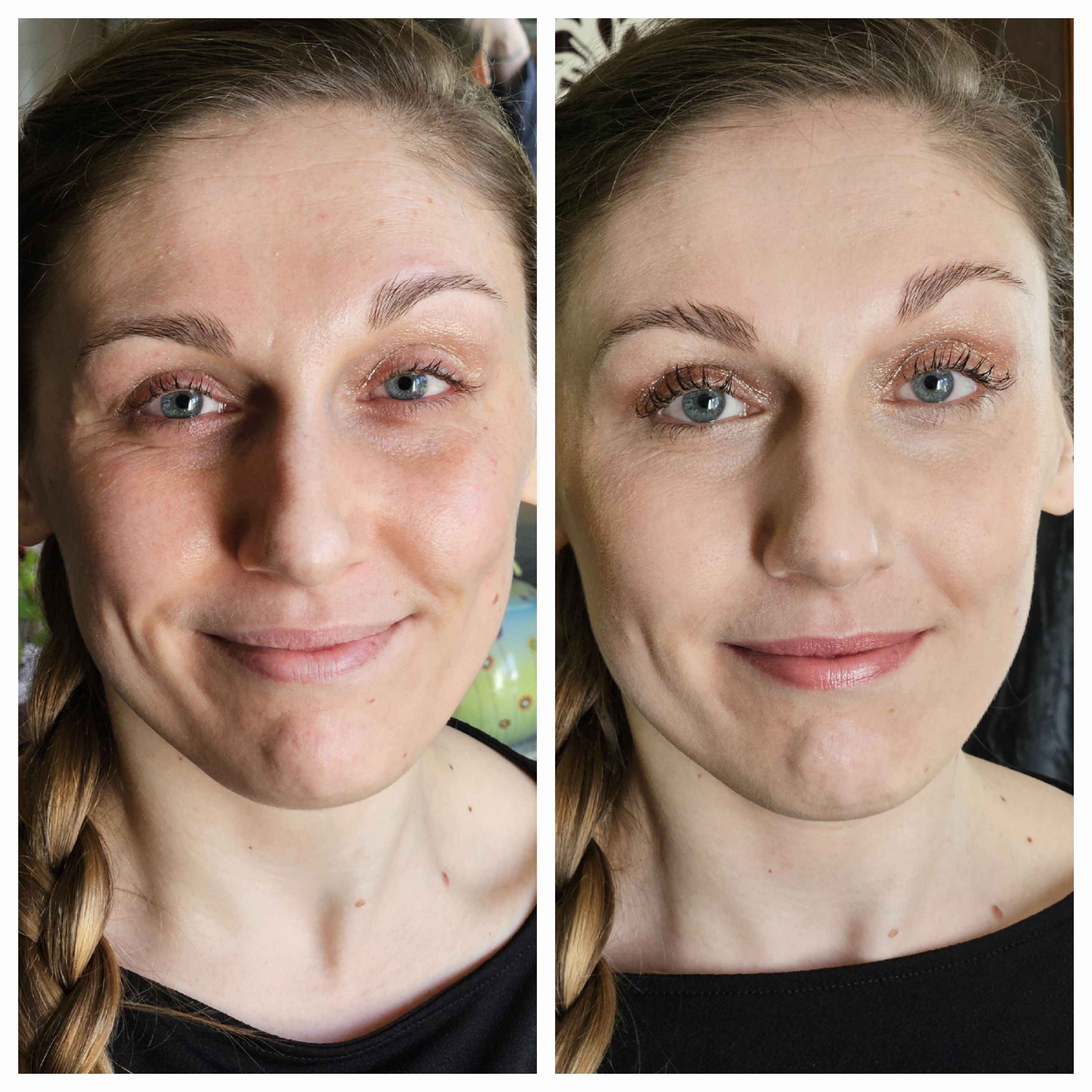 C’est une prestation totalement différente du maquillage complet car l’idée est d’aller là à l’essentiel : correction du teint rapide, blush, travail rapide des sourcils et :