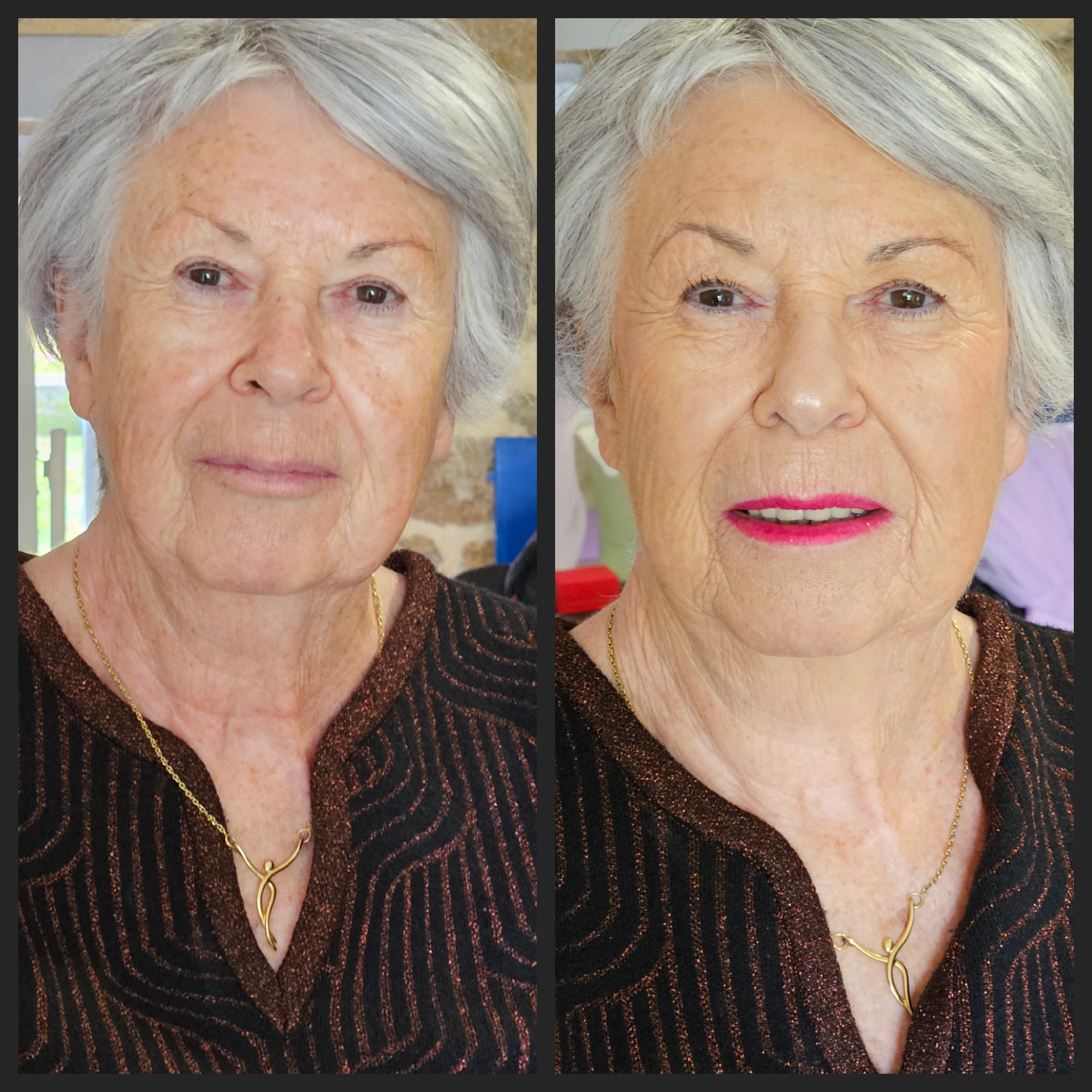 – Version bouche : mascara et bouche sophistiquée