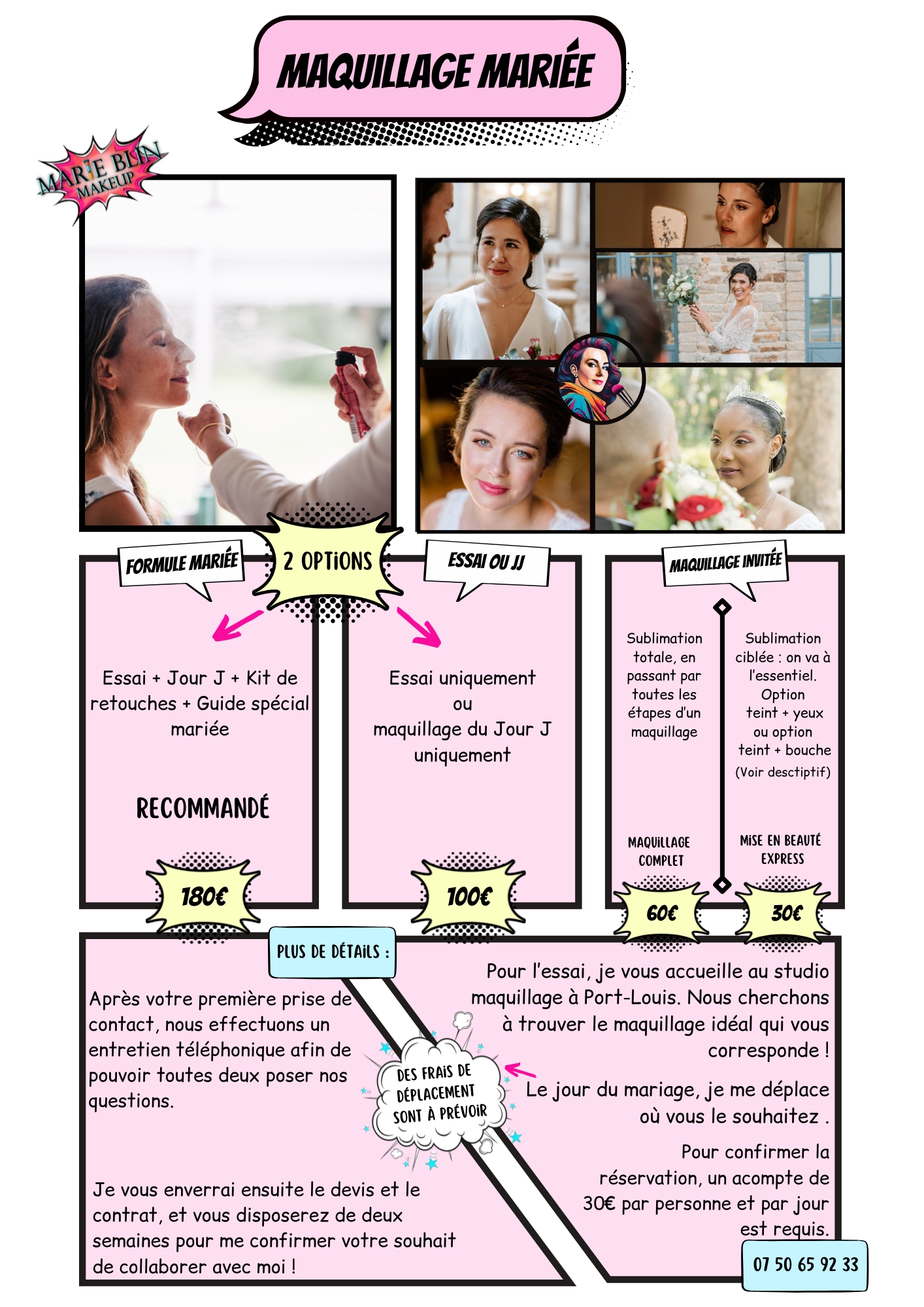 La formule Essai+Jour J comprend un guide, l’essai et ses modifications, le maquillage du Jour J et le kit de retouches.